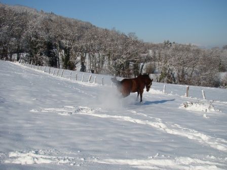 | Dire merci | t'as un sacré paquet de neige chez toi manon c'est vraiment superbe ces photos de chevaux dans la neige et avec sa couleur, ta juju ressort super bien |