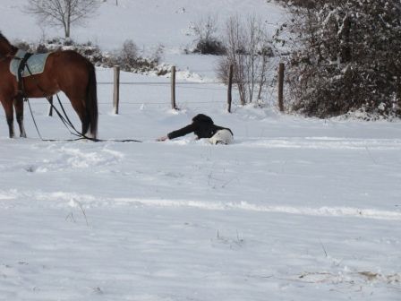 | Dire merci | ![]() Même au trot! ![]() ![]() ![]() Mais ça pouvait pas durer! Elle prend un virage un peu trot serré et c'est la chute!!! ![]() Quenya se demande ce que je fais par terre!! ![]() Bon j'ai les doigts gelés on arrête! ![]() |