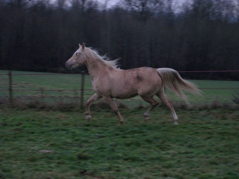 | Dire merci | Ha ok El Bimbo! C' ets vrai que c' est sûr, mon prochain cheval sera un cheval de couleur... Et même si je pensais plus à de l' isabelle, j' avoue que le crème et le champagne, mmmmh... ![]() Sarah, c' est sûr qu' il faut aimer les PRE, et leurs allures. ![]() Moi j' aime (vous l' aurez compris ), même si là, il faisait le roi fénéant... Et je n' ai pas vu de geste défectueux; il ne billarde pas, ne forge pas, à une morpho (et un dos surtout!) de rêve, bref... |