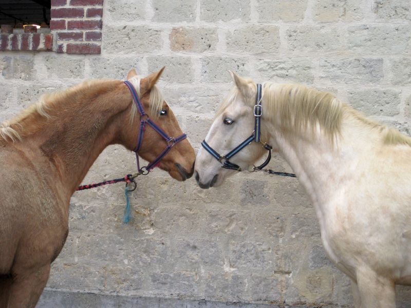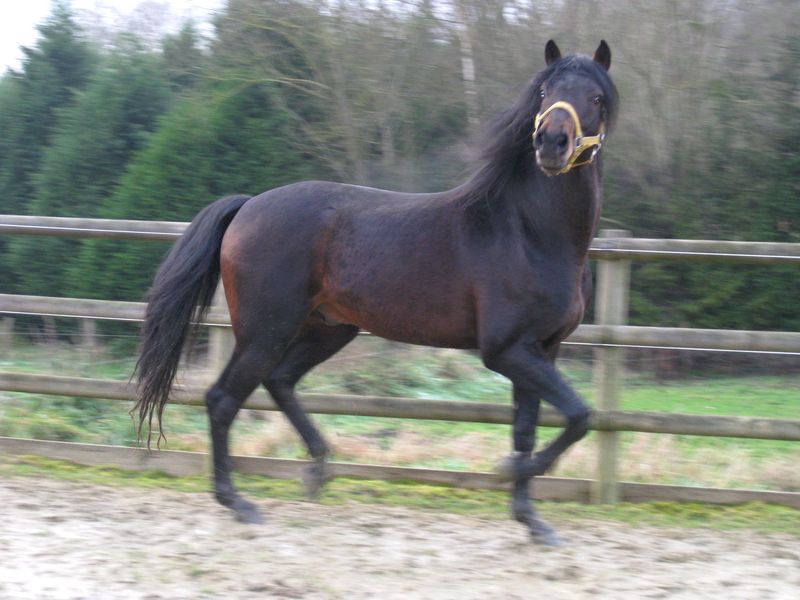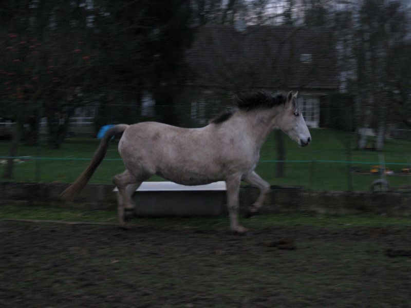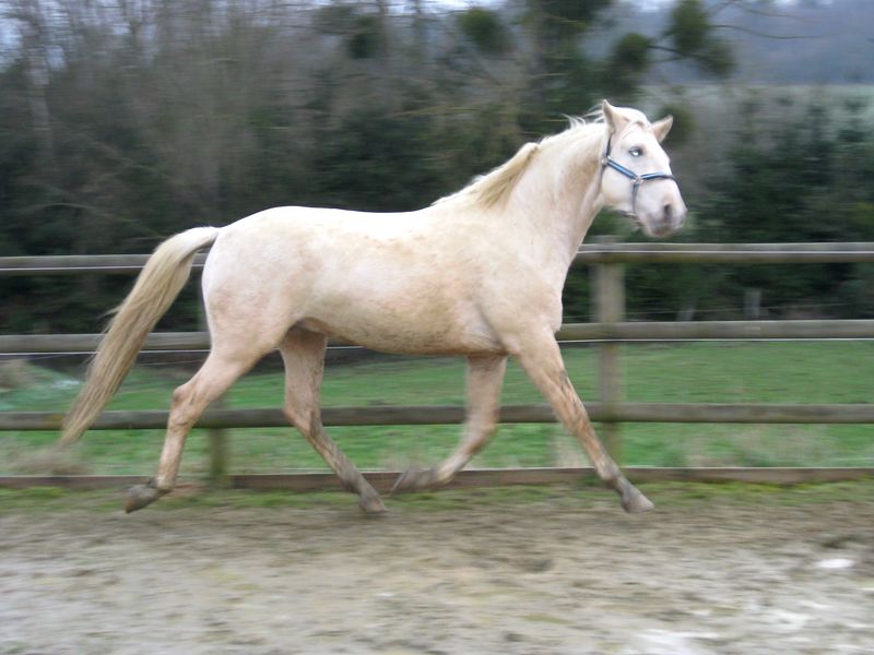| Dire merci | Que dire... Une beauté! Impressionnante! Un très grand cheval (1m70, ce qui lui vaut sur photos une ligne fine trompeuse), une morphologie absolument parfaite, une tête superbe, et des allures digne de ce nom...![]() ![]() ![]() ![]() Alors, déjà que mes médiocres photos ne rendent pas hommage à ces très jolis chevaux, en mouvement c' est pire encore... J' en ai loupé une trentaine... Du coup j' ai pris des vidéos, que je vous mettrai à la fin! Majico était plus intéressé par les crottins laissés par ses congénères dans la carrière, que par faire le beau et déployer ses allures, et nbotamment son très beau trot. Qu' importe, il a une vraie classe, un vrai Monsieur! ![]() ![]() ![]() Puis, on passe au joli Rhamsin du Verseau, entier, lusitano-barbe de 3,5 ans; petit nouveau arrivé il y a un mois je crois. Un cheval tout à fait différent, pas la même classe que Majico, pas du tout le même modèle, pas le même tempéremment, pas les mêmes allures, mais très qualiteux. Pis palomino, alors évidemment, il m' a plu! ![]() Etant jeune, il n' est pas encore tout à fait fini, mais prometteur le bougre. Et a priori, sa qualité première, c' est un super mental! ![]() ![]() Tout de suite, quand il y a une fille devant lui, il fait le fier le gaillard! ![]() ![]() ![]() (suite) |