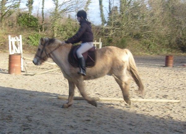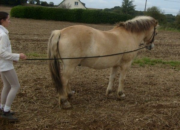 | Dire merci | J'ai oublié de mettre une vidéo à l'obstacle : il a glissé et la foulée est mal venu, du coup j'ai faits un mélange georgette puis taxi [videos]http://fr.youtube.com/watch?v=XuTk10gTUe0[/videos] En septembre, nous nous mettons à la recherche d'un deuxième, pour tenir compagnie à Kim qui se sentait bien seul, et pour ma mère, qui monte aussi. On a eu à l'essai une jolie Haflinger pendant un mois, mais elle est repartie car elle toussait, malgré plusieurs traitements ! Quelques photos de Kim au champs : ![]() ![]() ![]() ![]() ![]() ![]() Et on reprit un peu la longe, qu'on avait abandonné depuis ... février, parce que Kim, trop mou, se foutait de la chambrière et me menait en bateau. Donc on la refait, et j'ai été très agréablement surprise ! Il avançait très bien, se mettait dans une bonne attitude, engageait, et il a même tenu le galop sur quelques tours, un exploit ![]() ![]() ![]() ![]() ![]() ![]() ![]() ![]() Message édité le 18/12/08 à 22:02 |