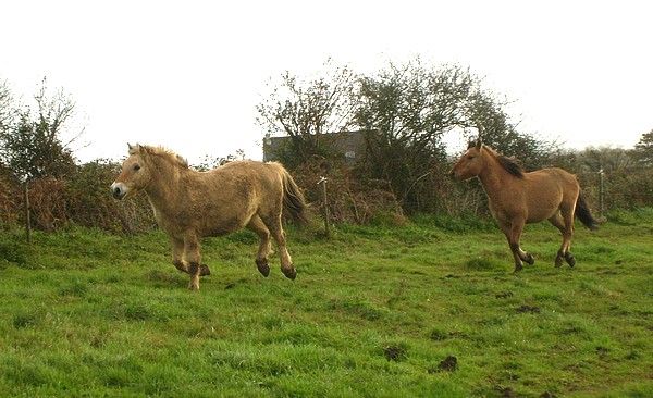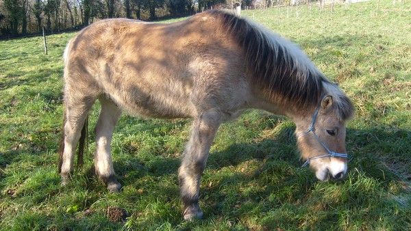 | Dire merci | Ici, je retracerais l'histoire de mes poneys et moi. Il y a un an environ, en janvier, je me mis à la recherche d'un cheval. J'allai essayer différents chevaux : un arabe de 8 ans, très joli, qualifié sur 60 km, mais bien trop délicat pour moi, et un lusitanien de 8 ans, ça ne passait pas, il était trop "frimeur". Et un jour, je suis allé voir un grand Fjord. Kim, PP par Eric et Paula du Bois Clos, grand ( 1m50 ), 9 ans, très gentil et un peu gamin dans sa tête. Il ne sait pas faire grand chose monté, il va juste aux trois allures, et va en extérieur sans trop de problèmes. Il a fait un peu de club, de l'attelage et de la voltige. Je craque devant sa bouille, et on l'achète ! Il arrivera à la maison la semaine suivante. Le jour de l'essai : ![]() ![]() Le lendemain de son arrivée ( il était encore svelte à l'époque )![]() ![]() ![]() J'ai un peu de mal à le gérer, il a une force incroyable, et n'est pas vraiment attentif. En plus, trois jours après son arrivée, je l'essaie et tombe bêtement, de ma faute. Au galop, j'étais en équilibre, il trébuche, et je passe par dessus bord. Bonne frayeur, je suis coincé du dos pendant une petite semaine ! On apprend à se connaitre. Je me fais gentiment trimballer, je ne suis pas assez ferme avec lui. Dur de passer du statut de cavalière de club à propriétaire ! ![]() ![]() En mars, changement de champ. Kim est tout de suite très à l'aise dans n'importe quel nouvel environnement. ![]() ![]() ![]() ![]() On peut apercevoir ses voisins derrière, c'est Izys, la jument de noémmie, du forum. ![]() ![]() *suite au prochain post* |