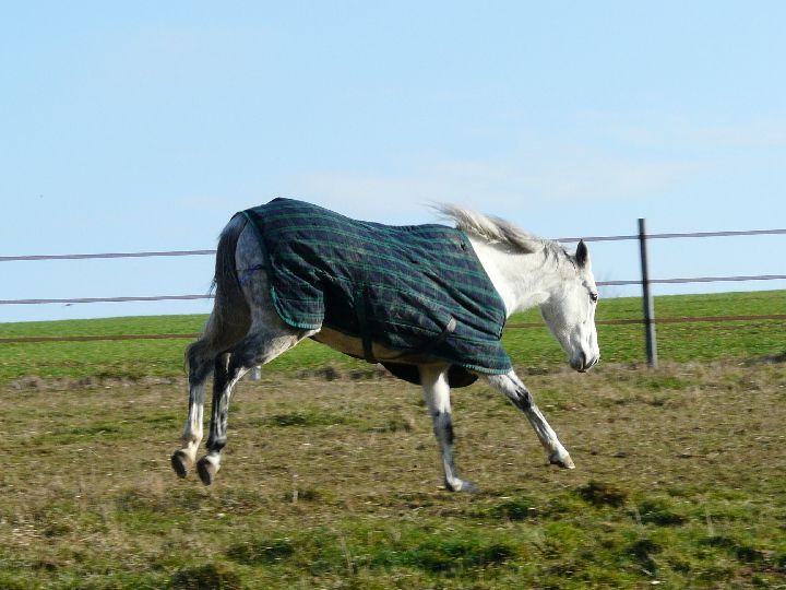 | Dire merci | j'ai moi meme un PS et je peux te dire que j'ai aussi l'impression de mettre trompé dans la marchandise. - déja seulement ça tete elle n'est pas droite comme sont les PS en général mais il est legerment concave comme ta jument. - il galoppe comme un PSAr, - queu sur le dos toute retourné, - allures relevé (il n'a aucune allure d'un PS mais que du PSAr) - il ronfle comme un arabe, - tete en l'air tout le temps, - secoue la tete comme un arabe. Bref un PS qui se prend pour un arabe, je m'en plien pas au contraire c'est tellement plus jolie a voir. De toute facon si on remonte a l'origine des PS sont a la base un mélange de 2 étalon arabe et un akhal téké avec des jument de course local en angleterre donc pour moi c'est normal qu'ils aient des gènes et attitude d'arabe. je suis allé sur un site ou l'on peu voir les photos des parents arrière grand parent voir meme jusqu'a l'origine familliale de nos PS et je peux te dire que chez le mien ya plus d'arabe que de PS j'ai pas de photo de lui en train de faire le con mais il faut que j'en face et je te la ferai voir |