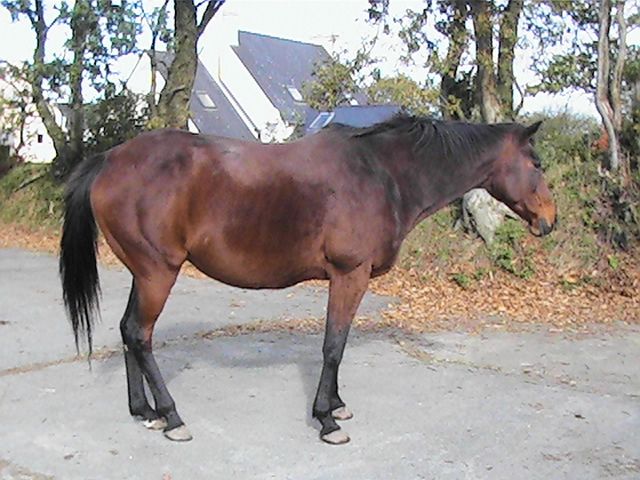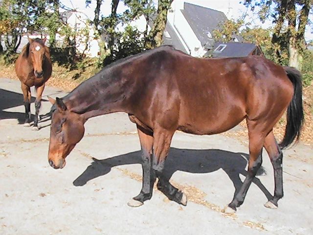 | Dire merci | j'ai pris des photos, je trouve que Ten a l'air déjà de trouver son ventre lourd , mais ca l'empeche pas de ruer dans les brancards quand les autres l'enerve , j'ai eu peur quand je suis arrivée au hangar j'ai entendu un vacarme avec la jument qui ouinait en ruant, c'est une vraie furie avec les autres! Quand elle aura mis bas, on a vraiment intérêt à ce qu'elle ne voit même pas les autres car je crois qu'elle voudra leur faire leur fête sinon avec un poulain dans les pattes!![]() ![]() la plus flagrante: ![]() |