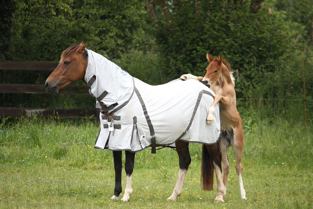 | Dire merci | Il me semble aussi que c'est ça Ynnaf! Le véto passe demain pour Heidi Elle a pouliné dimanche et aujourd'hui elle a encore eu des pertes très sales et ça m'inquiète Consistance un peu goudronneuse, tout collant, très foncé, bref pas bon du tout. Je pense qu'elle va avoir droit à un bon nettoyage... Sinon Alphée se porte comme un charme et commence à faire plein plein de bétises Il embête maman, se cabre sur son dos, la "mordille" (enfin il fait ce qu'il peut avec ses gencives ) il est trognon |