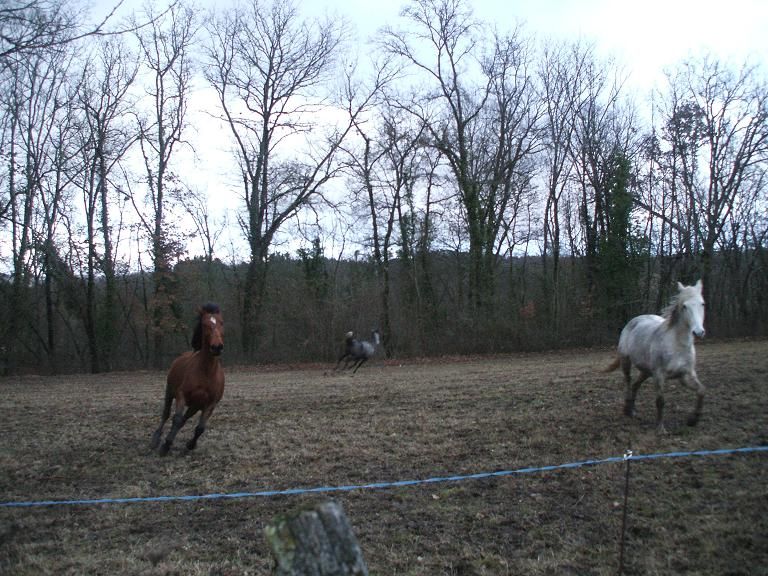 | Dire merci | ouais c'est clair ils étaient en forme ce jours la mais bon en attendant avec ces conneries ils voulaient pas venir manger... il y a que le gros doudou (palo) qui s'avançait pour venir manger, mais a chaque fois que les deux fofolles repartaient plein cul, il repartait aussi !! j'imagine trop dans sa tête " putain les nanas vous fêtes chier j'ai la dalle moi ... et merde je les suis on sais jamais...." |
