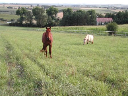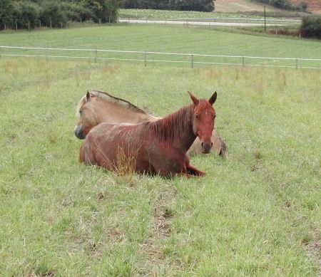 Déconnecté | mais non Harod pas le démon rouge mais l'ange rouge! c'est vrai que si elle ne connait pas quelqu'un et que cette personne (seule) rentre dans le pré, elle charge...c'est ce qui s'était passé dans son ancien pré..et oui je sais c'est pas très rassurant...mais bon je pense que à partir du moment où il ya les clotures avec le courant, personne ne doit rentrer dans le pré pour les photos en mouvement je n'en ai pas, mais j'ai des vidéos, mais qu'il faut que je les fasse charger et puis le problème, c'est qu'elles sont de très mauvaises qualité, mais on y voit quand même! donc à venir!![]() |