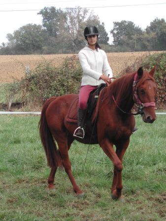 Déconnecté | Mariineuhc'est vrai que sa robe est originale, c'est écrit alezan sur ses papiers mais j'ai regardé sur internet et je suis tombée sur des alezans cuivrés et ça y ressemble coucou marsu! alors je l'ai acheté en aout 2007, elle est arrivée le 19 il me semble que Queen est arrivée chez toi en septembre 2007 non? (ça ferait un mois de différence, donc encore un point commun! )b en fait mon père est ravi de l'avoir! il ne pensait pas qu'un cheval jeune pouvait être comme Queria (on nous a souvent dit ,lorsqu'on fait des sorties en grope ou des rallyes, qu'elle était remarquable )elle apprend très vite et est d'une très grande intelligence(je dis pas ça parce que c'est la mienne!) ![]() mon père la monte quand il a des jours de repos, et le week end quand on sort avec nos deux chevaux (parce que je suis la seule à pouvoir monter le poney), je suis d'ailleurs un peu jalouse (faut l'avouer) ![]() mon père m'a dit: "tu avais raison, un jeune c'est mieux pour pouvoir tout lui apprendre et le mettre à notre main", ce qui est vrai, mais bon au départ madame avait pris de mauvaises habitudes avec son ex proprio, donc je vous laisse imaginer, un poulain (parce que 3 ans c'est jeune) sans aucun respect! enfin bon toute la famille est heureuse, et c'est vraiment la chouchoutte (avec son copain bien sûr) de la maison, même mon petit frère est monté dessus, c'était: "surtout me lache pas! attention elle baisse la tête, j'ai peur!" ou alors quand je le laisse aller donner la ration le soir, c'est: "elle a avancée vers moi et à coucher les oreilles!" je lui dis: "et alors qu'est ce que tu as fais?" il répond: "et b je suis parti en courant!" même mon grand père qui a toujours eu très peur des chevaux, vient souvent les caresser au pré et il est toujours là pour aller remettre de l'eau ou remplir les râteliers! ![]() |