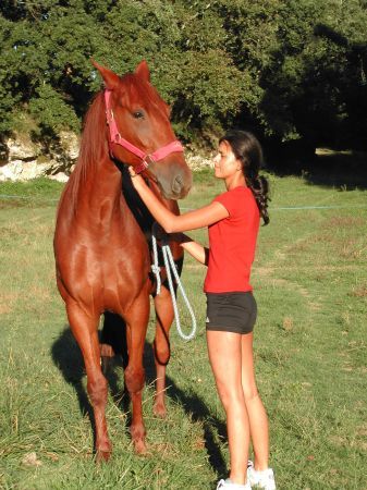 Déconnecté | alors petite présentation de notre histoire maintenant... début du mois d'août 2007 mes parents décident de m'acheter un cheval depuis mes 5 ans c'était mon rêve! je suis toute heureuse et j'ai même du mal à le croire me voilà donc à la recherche d'un dada (je ne sais ni quelle race je veux ni quel âge (même si mes parents voulaient à tout prix un cheval qui avait déjà du métier) ni même où trouver le cheval de mes rêves) je vais voir plusieurs chevaux, je téléphone ici et là sans aboutissement... Et puis on me parle d'un centre où on sauve des trotteurs de l'abattoir ainsi que d'autres chevaux. Direction donc du centre, on me présente un cheval, puis deux, puis trois...et ainsi dessuite. On me raconte leur histoire, leurs qualités, leurs défauts...mais ils ne me disent rien (trop excités pour certains ou vraiment mal en point pour d'autre) Et puis on me dit qu'il reste encore un cheval à voir,et là....on me présente Queria: le coup de coeur! On me dit que c'est Queria avec un K donc que ce n'est pas un jeune cheval, tout ce qu'il faut pour rassurer mon père qui ne veut pas se lancer dans la vie de propri avec un jeune. Donc je prend Queria en longe, je la brosse longuemment et puis on me propose de l'essayer. J'étais toute nerveuse, je vais dans la carrière, je fais du pas, du trot..mais mademoiselle ne voulait pas galoper. Peut importe c'était elle! Vient le moment de voir les papiers et là surprise! Queria avec un Q! une 3 ans! mais c'est elle et pas une autre! Elle arrive le 19 aout dans un pré (habité déjà par une vieille jument) pas loin de chez moi, et là commence nos aventures. |