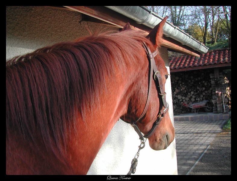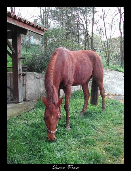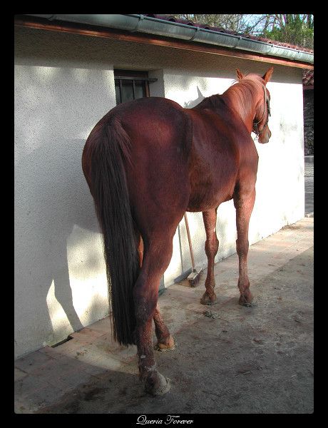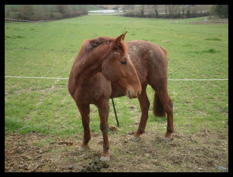Déconnecté | oui on le voit bien En temps normal elle a déjà un sale caractère,il ne faut rien lui laisser passer (je parle à pieds,parce qu'en selle,ça va) mais alors quand elle est en chaleur... faut avoir du courage Aucun cheval n'est parfait...j'ai enfin compris ça dimanche dernier Mon papa a trouvé une selle,c'est une forestier,je vais voir ça ce soir,je vous ferai des photos |