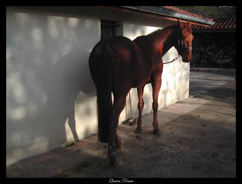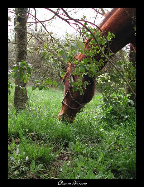 Déconnecté | oui ![]() Bon hier la sortie de mon père c'est très bien passée,Queria n'a pas cherché à embêter Lord ![]() Par contre il m'a dit qu'elle avait du jus,il a dû passer devant parce que derrière elle s'énervait un peu Il m'a dit qu'elle avait un pas franchement décidé.Je suis contente parce que généralement elle aime bien rester derrière,genre:je me foule pas trop,si y'a un danger, celui devant moi me préviendra... Ils ont quand même fait 22kms...Donc voilà,comme quoi y'a de la ressource dans ces bêtes là! ![]() Mon père a réouvert le pré (fermé à cause de la pluie),Queria était heureuse,mais le plus heureux c'était Patch,le pauvre,il était resté presque 2jours au box.Il a retrouvé la liberté |