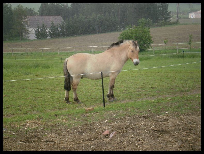 Retour dans le pré, je met Queria au box.ET là...triste spectacle le pauvre poney, que j'avais laissé sous la pluie...