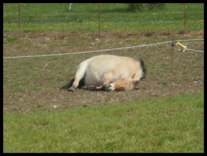 | On a trouvé une solution (enfin qui n'en est peut être pas une ) pour le ventre énorme de Patch. On voudrait l'enfermer dans le paddock où y'a quasi plus d'herbe (là où il se roule sur les photos plus haut).Le truc c'est qu'en faisant ça, il n'a pas accès à l'abri et puis y'a quand même de la bonne herbe bien tendre qui repousse