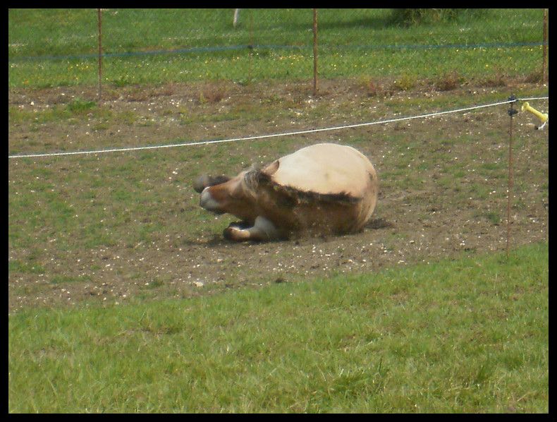 Bon et puis, comme on dit, après la pluie, le beau temps, donc j'ai quelques photos du "gros" (et de la rouge bien sûr) et attention: en mouvement (pas pour Queria, j'avais peur qu'elle glisse avec ses fers)  |