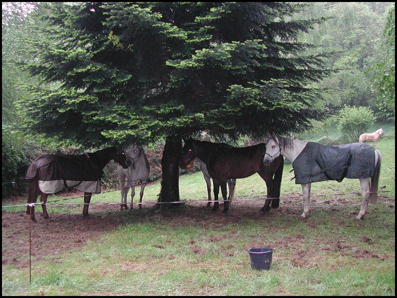 Déconnecté | En fait chez moi il fait beau , c'est dans les Pyrénées qu'ils sont partis et comme chacun le sait, en montagne le temps change très vite donc un coup il peut faire beau, 1h après il peut y avoir un orage.En plus il a neigé ![]() J'attends impatiemment qu'elle rentre,arrivée prévue vers 20h.Ca c'est sûr du repos elle va en avoir: au pré avec boudin Par contre j'ai une question à vous poser les filles J'ai chez moi de l'argile, mais il m'en reste pas des masses.-Est ce que ce soir quand elle rentre, je lui fait un masque d'argile (en espérant en avoir assez) sur les 4 membres et demain je l'enlève sur l'antérieur touché et je met une compresse de synthol(j'en ai acheté tout à l'heure)? Ou -Je lui met direct ce soir la compresse et sur les 3 autres membres je met de l'argile? merci ![]() |