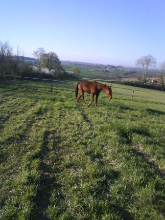 Déconnecté | Queria a de nouvelles chaussures : le maréchal est venu ce matin faire un bon parrage et ferrer Queria aux antérieurs maintenant je vais pouvoir sortir sans culpabiliser lorsque nous passons sur du goudron ![]() |