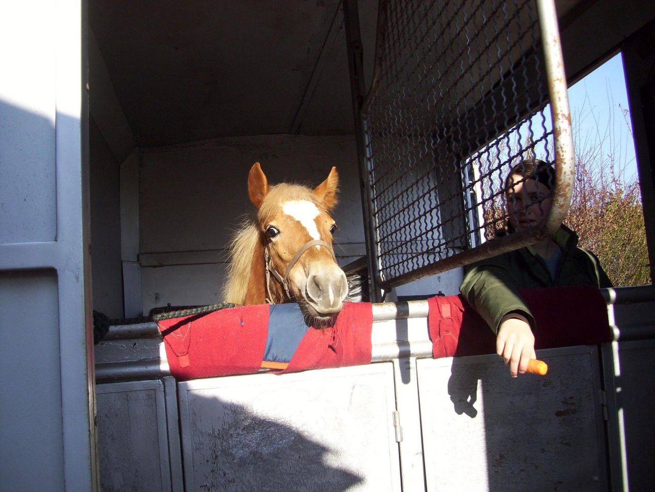 | lol ! c'est ULM, une adorable blondinette de 8 mois, bébé haflinger du forum sauvetage est arrivée chez moi hier !    elle a dit au revoir à son tonton et est montée très très gentiment dans le camion