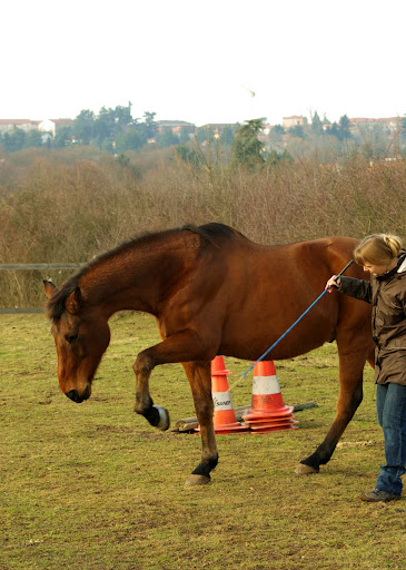 | Dire merci | Non, rassurez-vous, je n'ai pas un nouveau cheval, Vicky n'est pas (encore) totalement foutu pourtant faut dire qu'il cumule en ce moment.... abcès depuis mi décembre, 10 jours de box, puis retour au pré.... et re-abcès, avec une fistule en prime, siouplé retour au box lundi, on a recommencé les soins et vendredi matin, un maréchal est venu le ferrer (d'ailleurs merci à lui d'avoir pu venir en urgence, c'est un jeune MF tout juste installé, mais il est top ), plaque en silicone à droite (il était inconfortable sur le sol dur, et à la radio, on a remarqué qu'il avait une sole trèès fine) et plaque en alu vissée à gauche, pour pouvoir faire les soins régulièrement (car le podophylle est à nu, alors on préfère surveiller la cicatrisation)et donc sur le macadam, il fait un drole de "chlong" à chaque fois qu'il pose son antérieur gauche au sol, d'où le surnom temporaire de ROBOCOP enfin bon, Robocop, heu, pardon, Vicky est donc retourné au pré vendredi, et malgré son inconfort sur son antérieur gauche, il a vite gouté au plaisir de faire l'andouille avec ses copines! et cet aprèm, nous avons profité du beau soleil pour le photographier ![]() on commence par quelques jeux jambette ![]() "attrape!" ![]() campo (NB pour pakret: y'a du mieux, hein )![]() révérence (où il met ENFIN du poids sur son genou gauche!!) ![]() le tout en félicitant beaucoup, bien évidemment ![]() après tout, on a une réputation de mamie gateau à défendre ![]() cache-cache ![]() vicky est censé etre douloureux sur le pied gauche....mouais ![]() (remarquez au passage le magnifique bandage au chatterton pour combler l'espace entre la plaque et les glomes )*suite* Message édité le 18/01/09 à 02:57 |