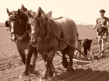 | Dire merci | La semaine prochaine il aura droit à cette nouvelle et belle expérience, quelques heures de Canadienne dans les champs et aux vignes, pour arracher les mauvaises herbes et aérer la terre. (Comme sur cette photo prise ce matin avec une jolie Comtoise et une non moins jolie Bretonne qu'un ami m'a prêtées (Juments sauvées de l'abattoir, au prix de la "viande"...), qui rendent d'innombrables services depuis des années maintenant, au milieu des prés, sans embêter qui que ce soit, et ne demandant pas grand-chose de plus que de l'affection et du travail au grand air)... ![]() ...) |