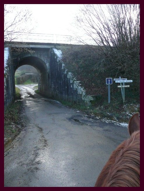 | Dire merci | carrefour suivant:![]() À gauche toute et on repasse sous la voie ferrée (comment ça, on sait pas ce qu'on veut )![]() Direction: ![]() Arrivées là d'habitude on file tout droit dans le chemin d'en face: ![]() Sauf que sur notre droite, y'a ça: ![]() Comme aujourd'hui, on est Dora l'exploratrice, on tente le coup, en sachant très bien qu'il y a 90% de chances que ça finisse dans un champ... |