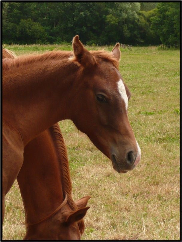 | Dire merci | Ah oui elle est d'une motivation.. Mercredi soir j'ai fait une grande balade tonique aussi avec Gitane ! (enfin tonique tonique hein ) on est passées par la ferme, le chemin qui monte, la grande route en ligne droite qui traverse les bois, puis on est redescendues par les bois, puis par les poules, puis la voie de chemin de fer, etc.. et bien y avait partout des bandes de chantier accrochées aux arbres sur le tracet ça pendouillait de partout je sais pas si t'as vu ?Quand j'ai vu les premier, j'me suis dit "la Gitane elle va pas aimer la blague.. " et en fait rien à foutre ! Gitane elle se les prenait dans la tête même au trot, même pas peur ! j'etais mdr T'es passée par là aussi ou pas ? Sinon, Gitane aussi est grosse (elle s'entraine à être gestante ) en + là on a rien fait du week end car pas le temps entre le foin, l'anniv' de ma soeur, et la visite de mon oncle.. du coup, elle s'enkilose vraiment ![]() Message édité le 23/06/09 à 09:30 |