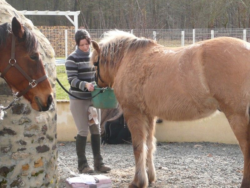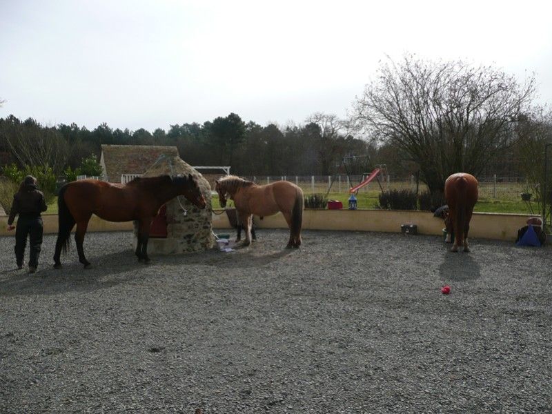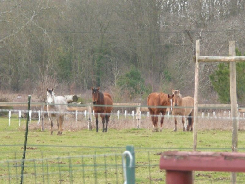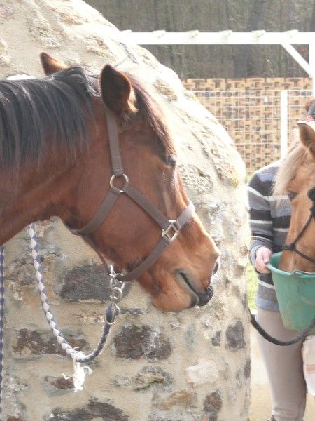 | Dire merci | ********** Kirikou en colo avec Pilou chez Gitane et Pasha ********** *************** WE du 27-28 février 2010 *************** Jeudi midi: construction d'un paddock dans le pré de Gitane et Pasha: on préfère ne pas prendre de risques et séparer Kirikou et Pilou de Gitane et Pasha Vendredi aprem': transport de Pilou Kirikou qui ont été adorables ![]() Samedi matin: j'arrive la 1ère et en attendant les filles, je trouve ça: ![]() Bien sûr, Kirikou me repère et s'assure que je l'ai bien vu "mais pourquoi tu ne viens pas me chercher "![]() y'en a un autre qui m'a repérée: "t'es qui toi?" ![]() |