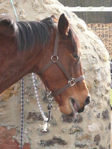 | Dire merci | Bon, je m'occupe de la Grosse, Marie et Julie arrivent entre-temps, on brosse, et on selle et zou, on est parties! Le matin: 12,6km en 1h44 soit un peu plus de 7km/h De retour de notre exploration matinale: ![]() |