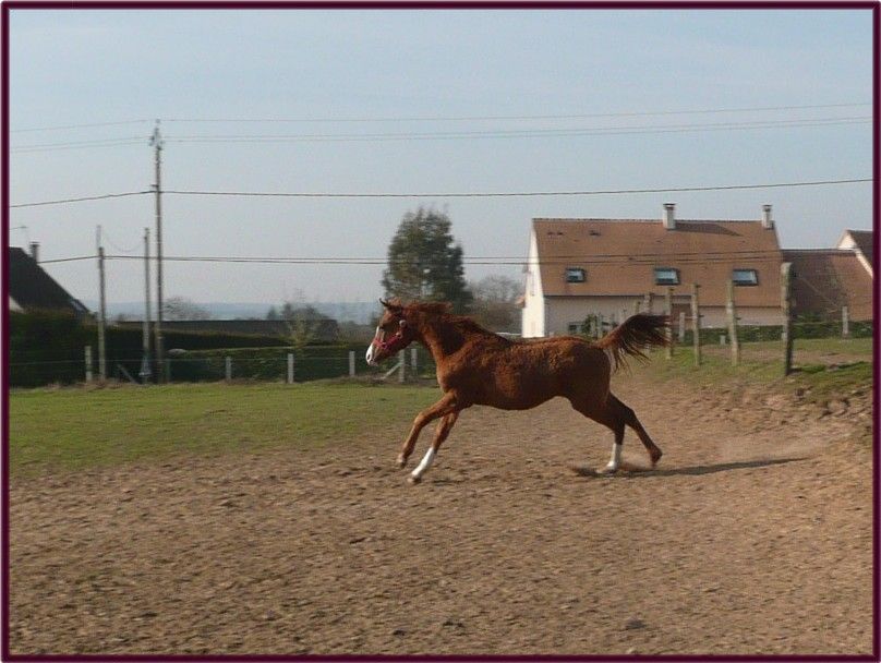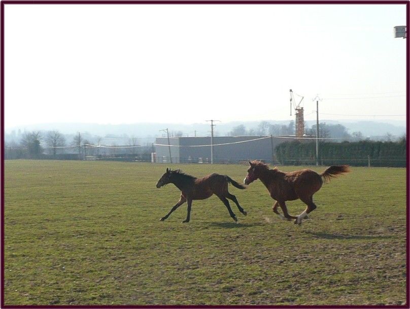 | Dire merci | ***************** mardi 16 mars 2010 ***************** Longe avec Kirikou, travail léger sur des barres au sol. Elle a très vite transpirer bien qu'on était le matin. Le pire, c'est que j'ai beau brosser, elle le perd à peine son fichu poil ![]() Séance photo avec Wellan dont voici deux extraits: ![]() ![]() Comme vous le voyez, il est malheureux. Résumé de la séance sur le post arabe: J'ai passé 1/2h dans son pré hier ... c'est fou sa capacité à foutre le bordel dans un troupeau de SF ![]() Une fois sortis, les SF, ils courent un peu puis ils broutent et ils jouent de temps en temps à s'embêter. Wellan, il court un peu puis il joue à embêter les autres et il broute de temps en temps |