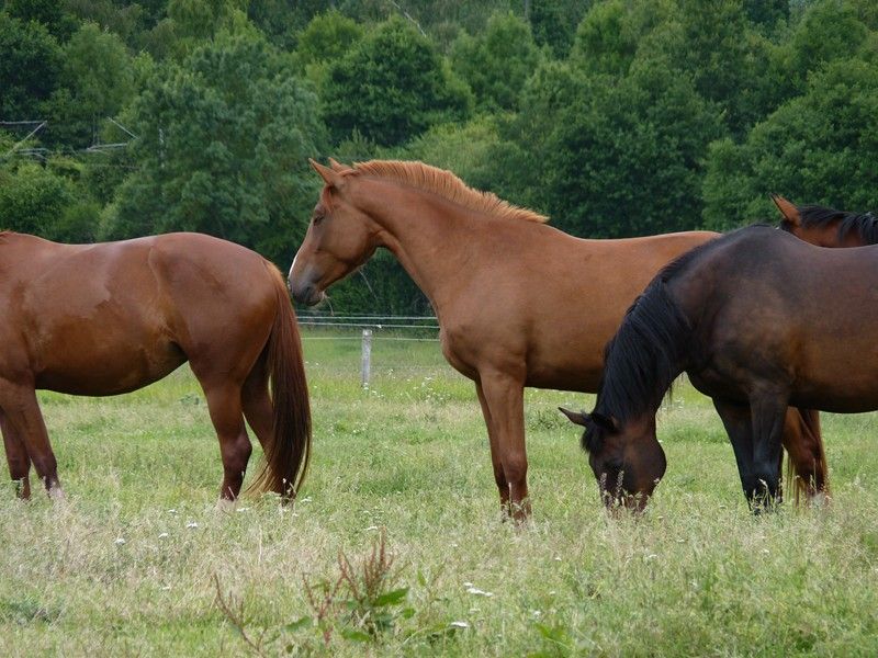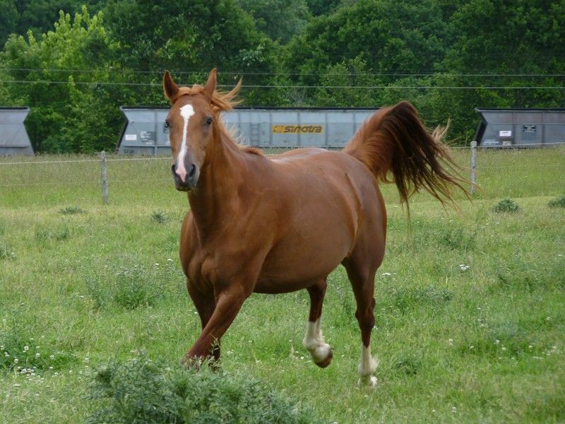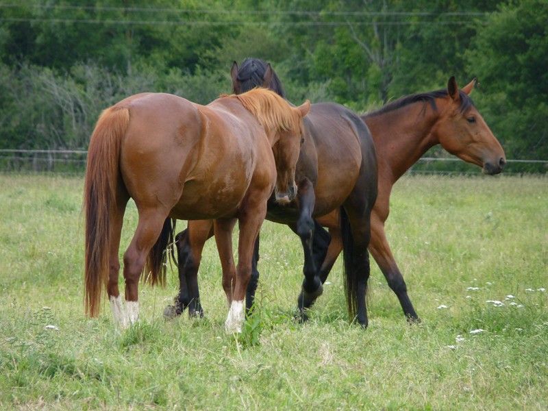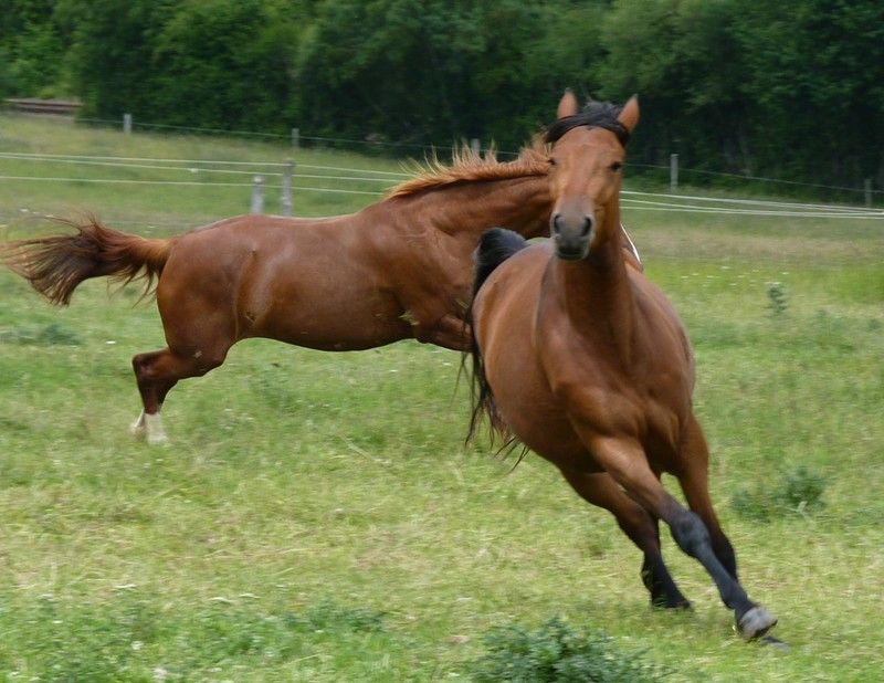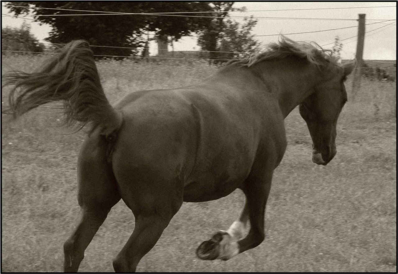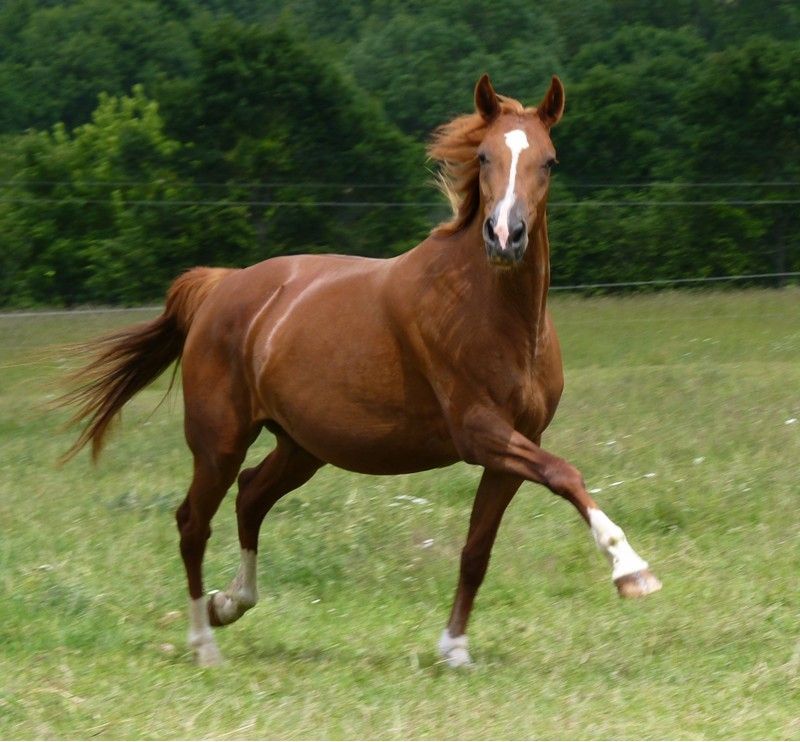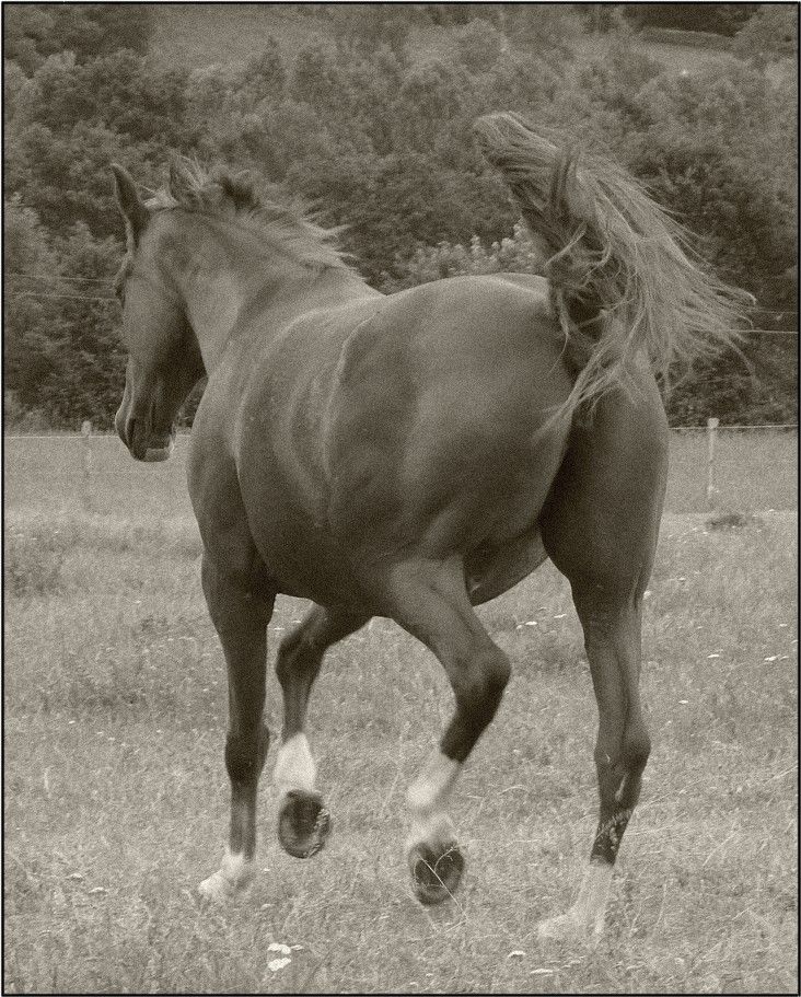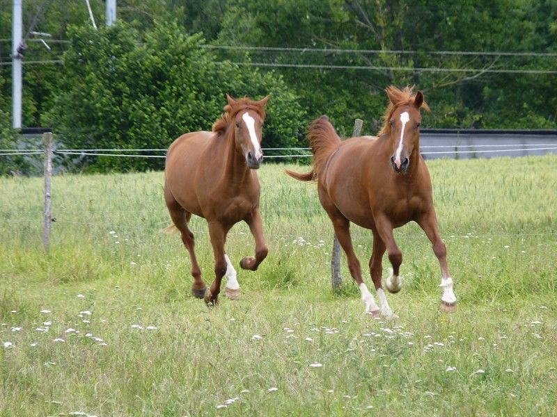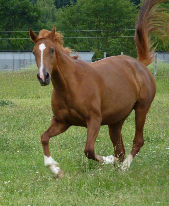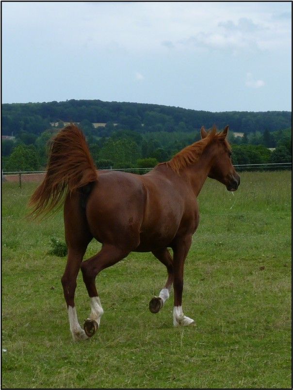 | Dire merci | *************** lundi 13 juin 2010 *************** Mes élèves étant en révision, j’ai ma semaine… ... j’en profite donc pour remettre Kirikou au travail puisque les croûtes ne sont pas [encore] revenues. Je ne crie pas victoire mais presque !Donc pansage rapide, pas de selle et zou 20 min de balade au pas à cru. La Grosse avait la pêche et voulait trotter mais je n’ai pas cédé ![]() Ensuite, avec Galeor on a décidé de la remettre en troupeau avec ses copines : Hégérie (la Folle), Talinn (ExtraSuperGlu), Toscane (SuperGlu), Velvet Moon (Poulichette) et Typhon (Typh’ l'étalon des plaines). Et là, ça a été festival ![]() Comme j’avais prévu le coup, j’ai plein de photos ![]() Message édité le 14/06/10 à 17:56 |