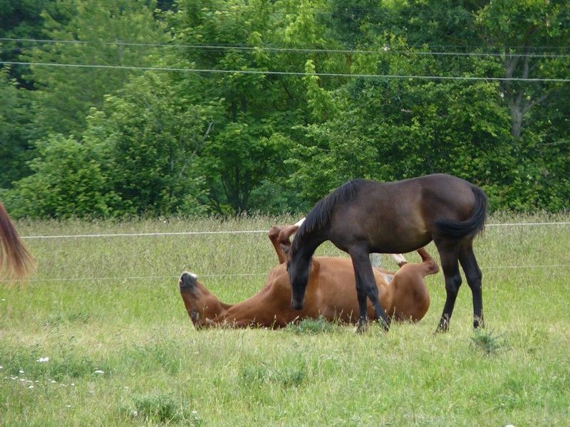 | Dire merci | ***** D’abord dire bonjour à tout le monde***** Forcément, Hégérie est très perturbé par cette intruse qu’elle connaît ![]() Puis, c’est au tour de l’étalon des plaines ![]() ![]() Mais Kirikou, les présentations, ça la gonfle vite, elle a autre chose à faire ![]() ![]() C’est sans compter Toscane qui ENFIN n’est plus la seule jaune du troupeau ![]() ![]() Du coup, Talinn s’y met aussi ![]() ![]() Enfin tranquille ? ![]() oh que non ![]() ![]() ![]() |