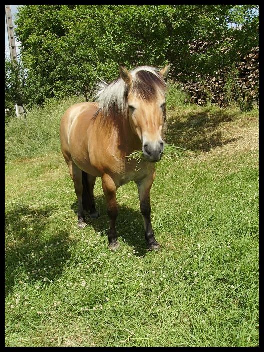 | Dire merci | j'ajoute ma tite kétie a ces belles photos de vos chevaux <3 Voici Kétie 11ans, 1m30, croisée fjord ![]() ![]() et quand elle est arrivée (ya 5mois) ![]() |