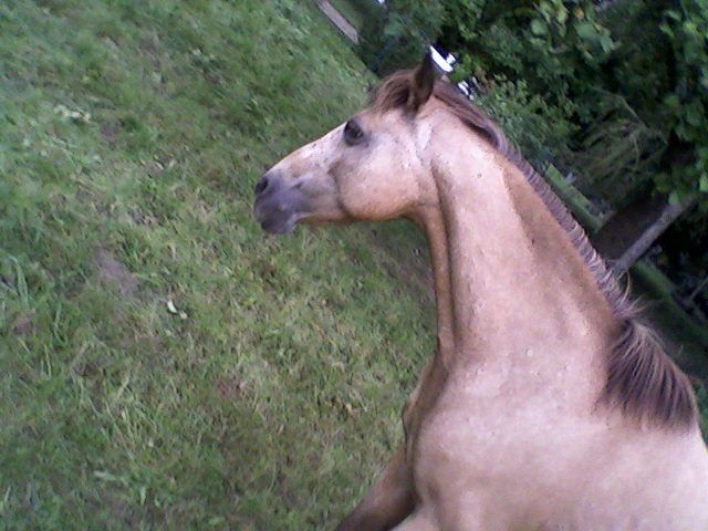 DéconnectéDire merci | Est-ce qu'il y a une "règle" d'évolution de la robe isabelle ? Parce que je vois plein de chevaux isabelle différents (je veux dire, y'a des isabelle plutôt dorés, des plus foncés, des pommelés, etc.) Est-ce que sur un poulain (< 6 mois) on peut déjà voir quel isabelle il sera ? Autre question : la Unica de Kat : c'est quoi son isabelle ? comme ça j'aurais dis qu'elle était baie, alors quelle caractéristique fait qu'elle est isabelle ? |