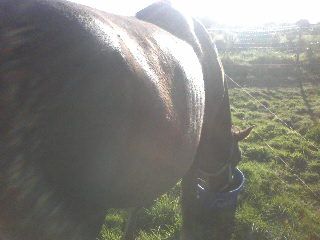 | yép !! seance photos aujourd'hui comme ca si demain elle a pouliné j'pourrais dire a h - 24 elle etait comme ca j'espere que ca ira pour elle au moins jusqu'a ce weekend pour les veillées ![]() |