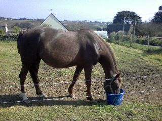 | deux coliques bizarres la premiere : coucher, regarde les flanc etc etc... la plutot "classique" pour les contractions. la deuxieme, j'ai eu des supers grosses frayeurs, Kracotte s'endort et se mettre a hennir, elle avait des soubresaut (ortho??) j'ai vraiment cru qu'il allait arrivé et puis s'est relevé comme si de rien etait pour brouter elle a mangé en 4 ou 5 fois la ration... |