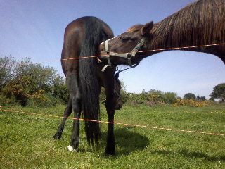 ben euh encore une longue série de minutes interminable sur le moment du colique/contractions ![]() elle avait de sacrès gaz et a des moments grognait a l'entendre de l'autre bout du champ j'ai appelé le veto au cas ou, et va verifier a tout hasard si bébé est bien placé... elle perd du liquide gras beaucoup plus que d'habitudes, et mon pere la trouve bizarre aujourd'hui, selon lui elle poulinerai cette nuit ma mono m'a gentillement proposer de passer au champ demain matin avant son rendez vous chez le chirurigen, verifier au cas ou! j'ai pas su comment la remercier, car elle voulait la prendre chez elle et tout... mais comme j'ai une jument qui ne m'appartient pas, elle veut pas a cause de cette jument ... donc demain, la miss aura de la visite, et j'ai deja les premiers fans de bébés |