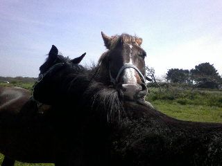![]() y'en a qui vont me hair Ca commence a se confirmer!!! Ce tour etait euh, angoissant pour moi et kracotte ca l'a saoulé grave de me voir ![]() j'avais oublié de remettre le licol et impossible a choper : obligé de courir derriere comme une gogoleelle faisait les 100 pas dans le champ, un coup en rond un coup le long du fil, quand Kalouna, l'autre juju s'approchait kracotte etait franchement tres mauvaise, j'ai cru qu'elle allait taper a travers les fils ![]() jamais vu en 5ans de cohabitation un aussi mauvais caractere!! du coup prochain tour a minuit 30 fin depart maison a 15quoi... et en attendant café clope pour tout le monde |