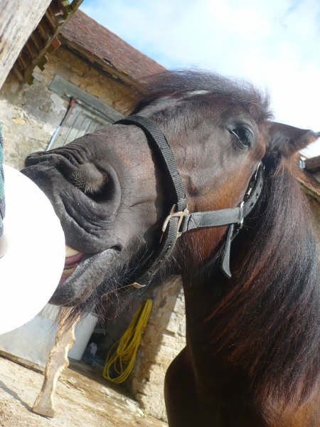 | Dire merci | c'est le petit loulou de gypsy!!! il a bien grandi!!C'est joli ce mélange, j'ai hâte de voir ce qu'il va donner adulte mais j'ai un bon pressentiment car les deux modèles sont assez proches (parfois les croisements IC avec des modèles éloignés comme des trotteurs ou ibériques ça donne des chevaux...bizarres!). J'adore la photo "réflexion intellectuelle" hi hi ![]() |