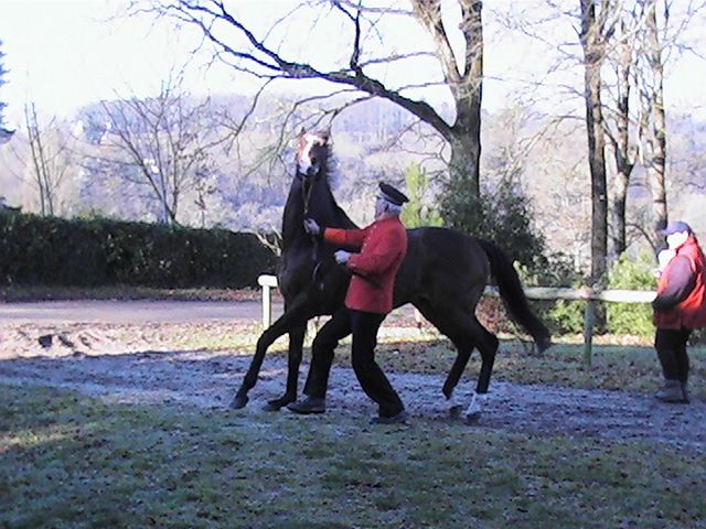 | Dire merci | Quand il est sorti de la carrière il a eu peur de X chose Oui, Mikael aime bien ce genre de chevaux, et puis, né, élevé à la maison, débourré également par Mikael, ca n'est plus pareil non plus je pense. La jument est confiée jusqu'au sevrage du poulain! En fait, Mikael compte faire courir le poulain! |