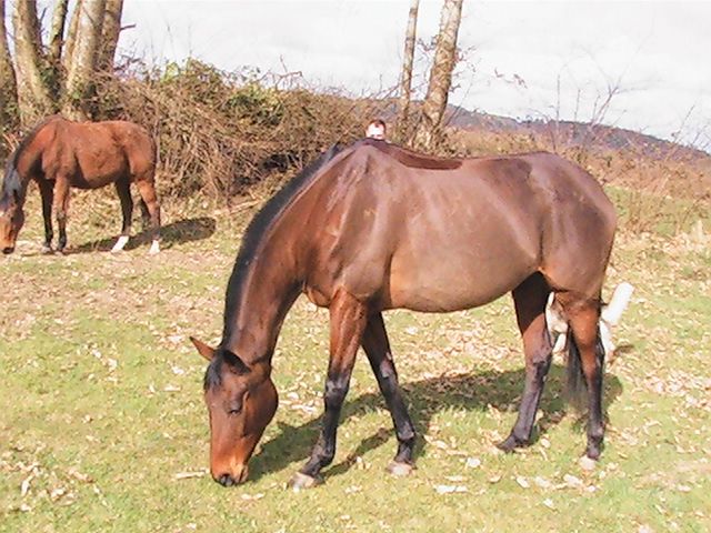 | Dire merci | Oui, elle est gâtée avec son fiancé, il est plutot beau gosse! Elle doit partir à la saillie mi-mars normalement. Aujourd'hui, comme me l'avait fait remarquer annabellesarah, c'était l'anniversaire à Ten (enfin hier plutot vu l'heure!) Ces jours-ci, Ten s'éclate au pré, elle ne tient pas en place! Pour aller au pré et rentrer, c'est elle qui prend la tête (car les chevaux y vont tous seuls, on tend une corde et après, ils n'ont qu'à suivre le chemin) Je mettrais des photos quand je pourrais! |