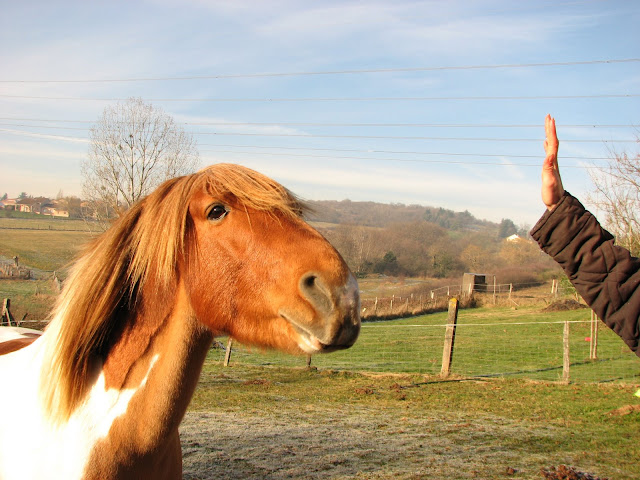 | Dire merci | Je crois que le pie est un "critère d'entrée", ou d'exclusion! Et encore on est ouvert: on se met au jaune. Avant il n'était question que de pies alezans. Si si le Calou saute. Il a un joli geste quand il veut! On ne saute pas spécialement souvent, c'est vrai! Et Pitch, je t'assure qu'il en a des défauts! Les photos ne laissent pas tout transparaitre! |
