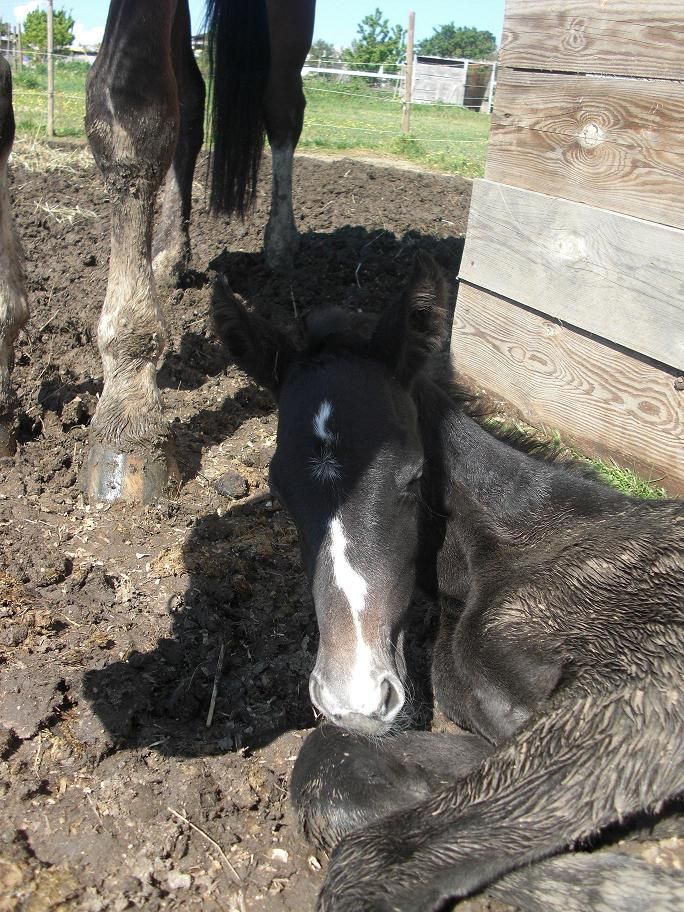 | Dire merci | voila les photos de la petite pouliche hier apres midi le veto et venu rendre visite ben tout va bien la maman cest un peut dechireer donc il devrais un peut la recoudre aussi tout va bien elle boi bien le lait et galop deja courage a tout se qui attende cest va arrive je vous mettrais autre photos pour levolution |