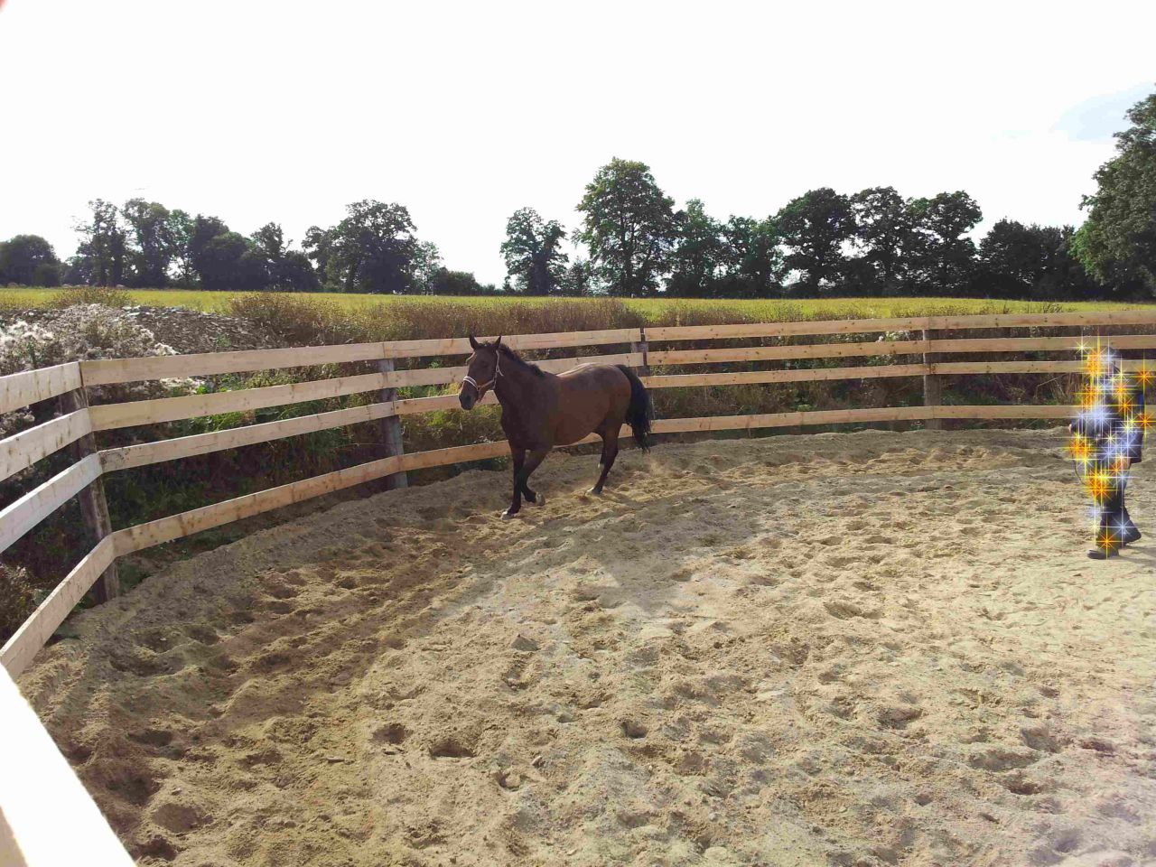 | Dire merci | Eh bien toute petite séance hier histoire de. J'en ai marre qu'il se traine alors je me suis dit que quitte à faire autant faire court mais très actif. Que du positif je me suis fait plaisir. Pour dire j'avais pas pris la peine de changer de pantalon je suis restée en jean j'aurai pas du j'aurai encore plus profiter. Mais franchement un cheval au taquet qui avançait super bien et surtout qui a bien tenu son galop dans se vautrer et sur plusieurs tours. |