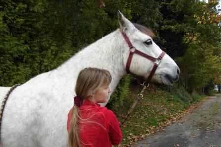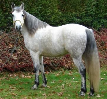| Dire merci | Me revoilà bon merci pour les conseils pour les photos alors je reprends ma petite histoire. Modestie est une jument poney français de selle 50 % welsh par sa mère voici sa photo à 9 mois et 50 % Connemara par son père, son père est Silver of laps qui était étalon au haras de Lamballe. Malheureusement je n'ai pas de photo de son père.![]() Modestie à 9 mois puis ![]() la voici à 1 an avec sa mère, Modestie est en arrière plan. Et maintenant la voici, la photo date du mois de novembre dernier. ![]() Sa robe est bien pomelée aux fesses car ce mois ci après la mue elle a blanchi avec des tâches aubères. |