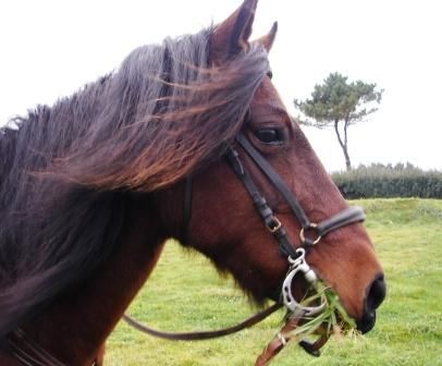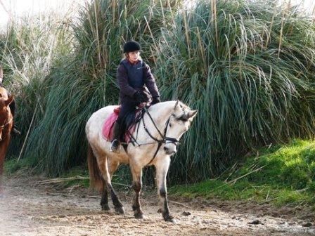 | Dire merci | ![]() Après des mois d'attente voici enfin la suite. Voici ma première balade avec ma jument. Elle découvre la mer car elle ne connaissait que la campagne. Elle est très intéressée par les bateaux qui passent. Je la monte encore en hackamore et l'habitue peu à peu à son mors à aiguille. |