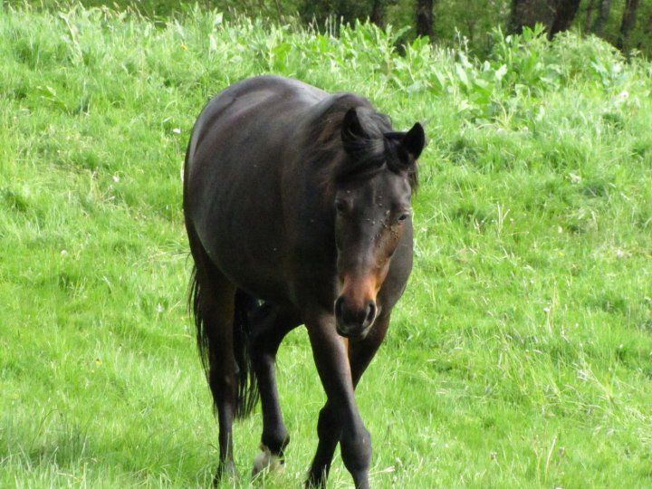 | Dire merci | Toujours pas de nouvelles photos mais qqs nouvelles! Les copains de pré de Union ont quitté la pension lundi. Il va rejoindre un autre groupe mais pas tout de suite, on va deja le mettre dans le pré a coté pour qu'ils se frequentent un peu à travers la cloture! et pour l'instant il est tout seuld ans son ancien pré parce qu'il faut renforcer les clotures et mettre plus de jus dans son nouveau pré (comme il a tendance a se rouler en dessous pour voir si l'herbe est meilleure a coté ).Je lui ai rendu visite mercredi soir, il est arrivé au galop comme un fou furieux, quel goinfre il voulait juste rentrer pour avoir sa ration Ensuite je redescend chercher son licol, je discute avec les eleveurs, et la je me redirige vers son pré, il fait un coup de tete dans ma direction et hurle quel maboule mais le pauvre au lieu de le rentrer au box je l'ai attaché dehors pour le brosser, il etait deg ![]() Du coté de Ruby ca avance. après le galop monté longé, puis le galop monté seul mais dans le rond de longe, on arrive maintenant à prendre le galop en fin de séance dans le manège! c'est laborieux, surtout à main droite, mais c'est que la 2e seance ou je tente le galop en manege (sa proprio a du en faire 2 aussi) et elle le prend deja dès la 1ere tentative a gauche! par contre elle ne le tient pas plus de 3 ou 4 foulées mais ca va venir ce soir on se fait une balade, je vais tenter le galop, la dernière fois elle l'a pris elle meme sur un chemin mais elle n'a fait qu'une foulée... moi je criais"bravo Ruby! Supppppeeeeerrrrrrrrr" |