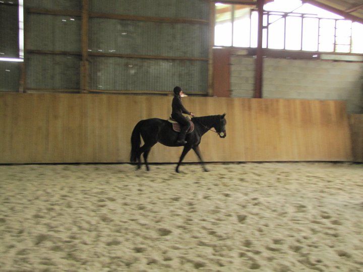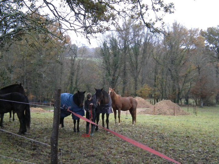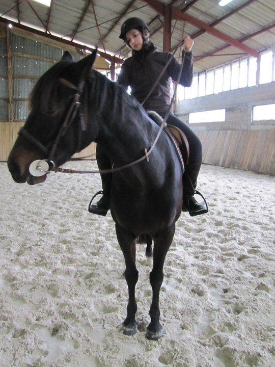 | Dire merci | tu m'etonnes hier quand je rentrais dans la nuit noire je regretais moins bah ouai c'était pas mal. deja j'ai mis un temps fou a la decrasser comme je l'avais remis au pré sans couverture dimanche! un tas de boue!! je comprends mieux pourquoi on met des couvertures puis au manège on a fait surtout des exos au trot sur des cercles renes assez longues et a la fin de la seance elle avait la tete bien basse. Elle est toujours raide par contre. Et on a fait des departs au galop. bref, c'était sympa ![]() |