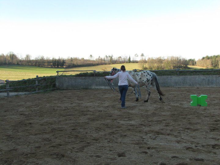 | Dire merci | Et maintenant la video. Comme vous pourrez le voir il y a plusieurs problèmes : - Union tente souvent de s'arrêter vers la porte en commençant un petit désengagement, ça ca va passer, surtout quand j'aurai une chambrière (mais figurez vous que le super decathlon de Limoges n'en vend pas )- Je ne me place pas bien par rapport à lui, je bouge trop - Union me tire vers la porte, surtout au galop, je ne suis plus maîtresse de la direction et donc du cercle => pour les 2 derniers soucis mon plan est de délimité un cercle a l'aide de plots et de barres, au centre de la carrière. je me dessinerai un rond au milieu duquel j'essaierai de ne pas sortir. Comme ca il n'y aura pas de tentation vers la porte, ni de tentative pour se coller a la barrière et moi je serais obligé de tenir le cercle. Lien |