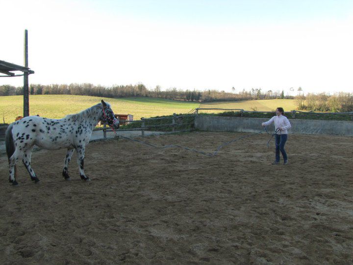 | Dire merci | Loux qd je le longe je cherche surtout a faire de belles transitions et qu'il réagisse bien à la voix. je le longe que très rarement dc au final à chaque fois faut se remettre un peu dedans ! mais il connait bien le boulot (du coup des fois il veut pas aller sur le cercle mdr) je cherche aussi a avoir de jolis départs au galop, mais je le galope pas vraiment. simplement qques foulées pr qu'il comprenne qu'il peut galoper en longe calmement ! mais jte dis c'est pas souvent que je le longe! ! |