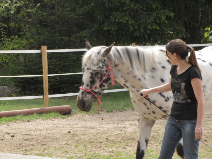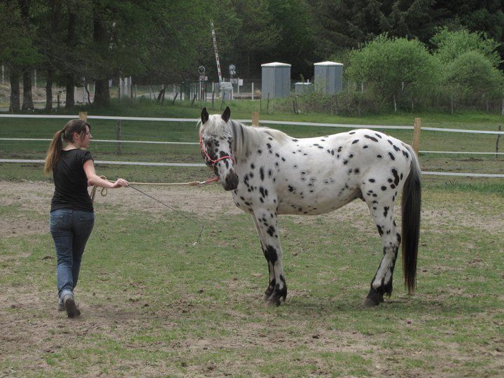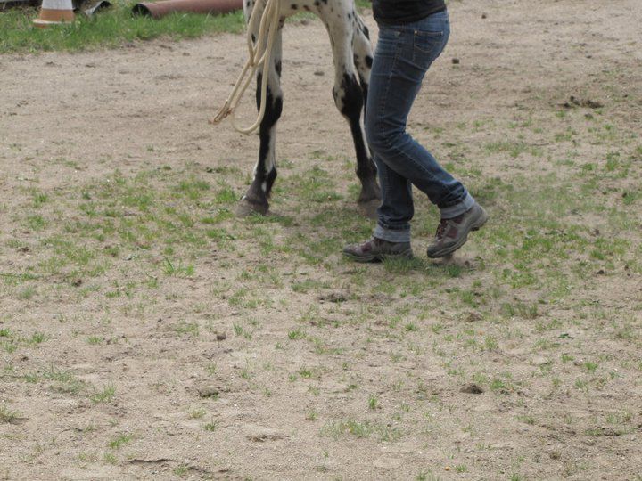 | Dire merci | je suis d'accord avec vous! surtout que c'est ce que j'essayais de travailler ces derniers temps avant qu'on "demenage". Mais la j'avais pas ma longe de longe, du coup je me suis servie de mes renes (3m) et ca faisait un petit cercle, c'est pour ca aussi que je tend le bras, pour donner plus d'ampleur au cercle. mais de manière generale c'est effectivement ce qu'il faut que j'apprenne a faire, et vous me el confirmez le + gênant c'est que tu le sentes stressé, ça ira sans doute mieux s'il le met au milieu des autres je verrais comment il est cet aprem, mais j'ai l'impression que ce qui l'angoissait c'était le fait d'etre excentré de l'activité, parce que son paddock était loin de tout. alors lui qui a l'habitude d'etre manipulé au moins 2 fois par jour, qu'on s'occupe de lui au box, qu'on lui parle ect ca devait etre un peu dur. je pense que son changement de paddock va l'aider a se detendre |