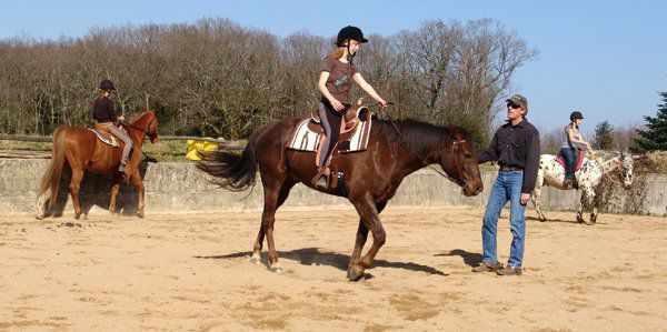 | Dire merci | Résumé du week end! Vendredi : cours l'aprem avec Bertrand, en compagnie de 2 autres participantes et leurs chevaux (Red Bird QH de 6 ans et Tuann SF de 15 ans) On part directement sur la séance montée. Je pense que Bertrand voulait voir si on avait avancé un peu. Puis c'est vrai que je lui avais dit par mail qu'on voulait apprendre à monter western. Il a quand même manipulé un peu Red Bird qu'il ne connaissait pas pour voir à qui il avait affaire! Bon direct il me dit que mes rênes ca ne va pas, qu'il faut que je prenne du contact. Il faut que le contact soit fort s'il a la gueule en l'air ou léger s'il est bien positionné. moi je le laissais toujours renes longues Après l'échauffement, pendant lequel j'entends sans cesse que Union est tout dégingandé, qu'il précipite, gueule en l'air, pas concentré ect..., on a fait des flexions à l'arrêt. Union donne toujours très bien, le problème c'est plus qu'il ne reprend pas il reste plié à attendre Après on fait pareil sur des cercles au pas et au trot. A main gauche il donne très bien et garde de l'impulsion, mais à main droite c'est beaucoup plus dur. Puis on ajoute à ça des arrêts nets, et le placé. Donc garder du contact et relacher quand il cède, puis reprendre dès qu'il relève la tête, tout ça en avançant. garder les mains fixes, les poser dès que l'attitude est bonne. Ensuite on est passé à une main pour tenir les renes. Bah franchement ca perturbe! Donc toujours le même travail de flexion sur cercles puis arrêt tout ça en avançant avec les renes dans une main bien fixe qu'on pose. J'ai eu un compliment (incroyable) sur une ligne droite au trot, m'a dit que Union avait la bonne attitude ![]() Ensuite on est passé au galop. Je lui avais dit sur j'avais un problème pour partir à la bonne main à droite. La solution c'est juste de l'arrêter quand il part a faux et de repartir et ainsi que suite jusqu'a ce que ca soit à juste. Par contre, j'avais aussi un autre problème : garder le galop plus d'1/2 tour. Je pensais vraiment que ca venait de ma position. Donc l'exo c'était départ au galop, cercle après 1 tour, puis trot puis arrêt, le tout en tenant les renes à 1 main. bien entendu après 1/2 tour Union est repassé au trot. et la Bertrand me dit que c'est très simple : il se fout de ma gueule! Du coup c'est reparti avec une cravache et au moment ou il allait repasser au trot, bam cravache... et la paf gros coup de cul! il a bien tenté de m'éjecter le salopiaud j'ai poussé un "wouhouuuuuuuuuuuuu" et Bertrand qui me disait "accroche toi a la crinière, donne des renes" du coup on s'est fait quelques tours au galop puis cercle! c'était donc ça le problème |